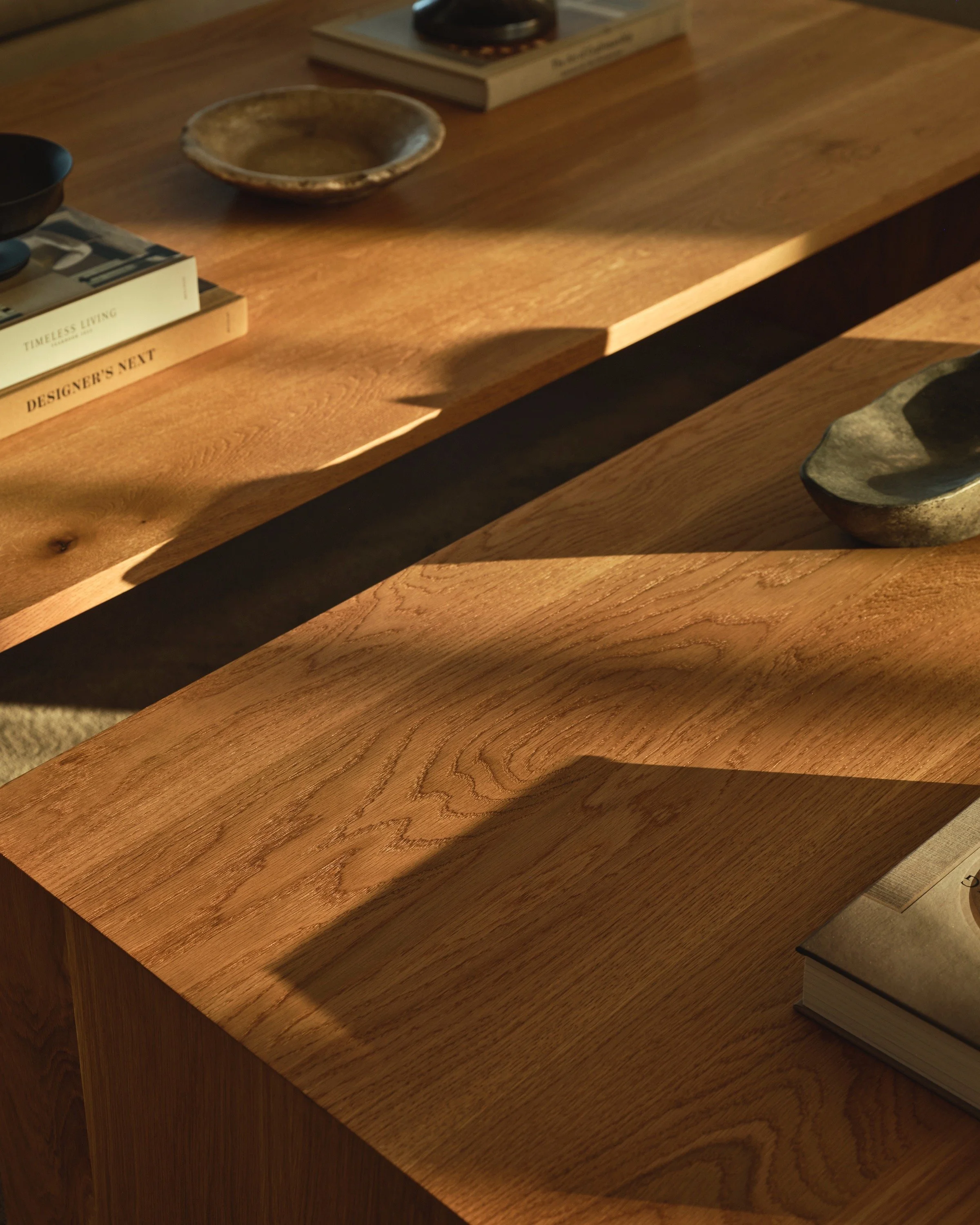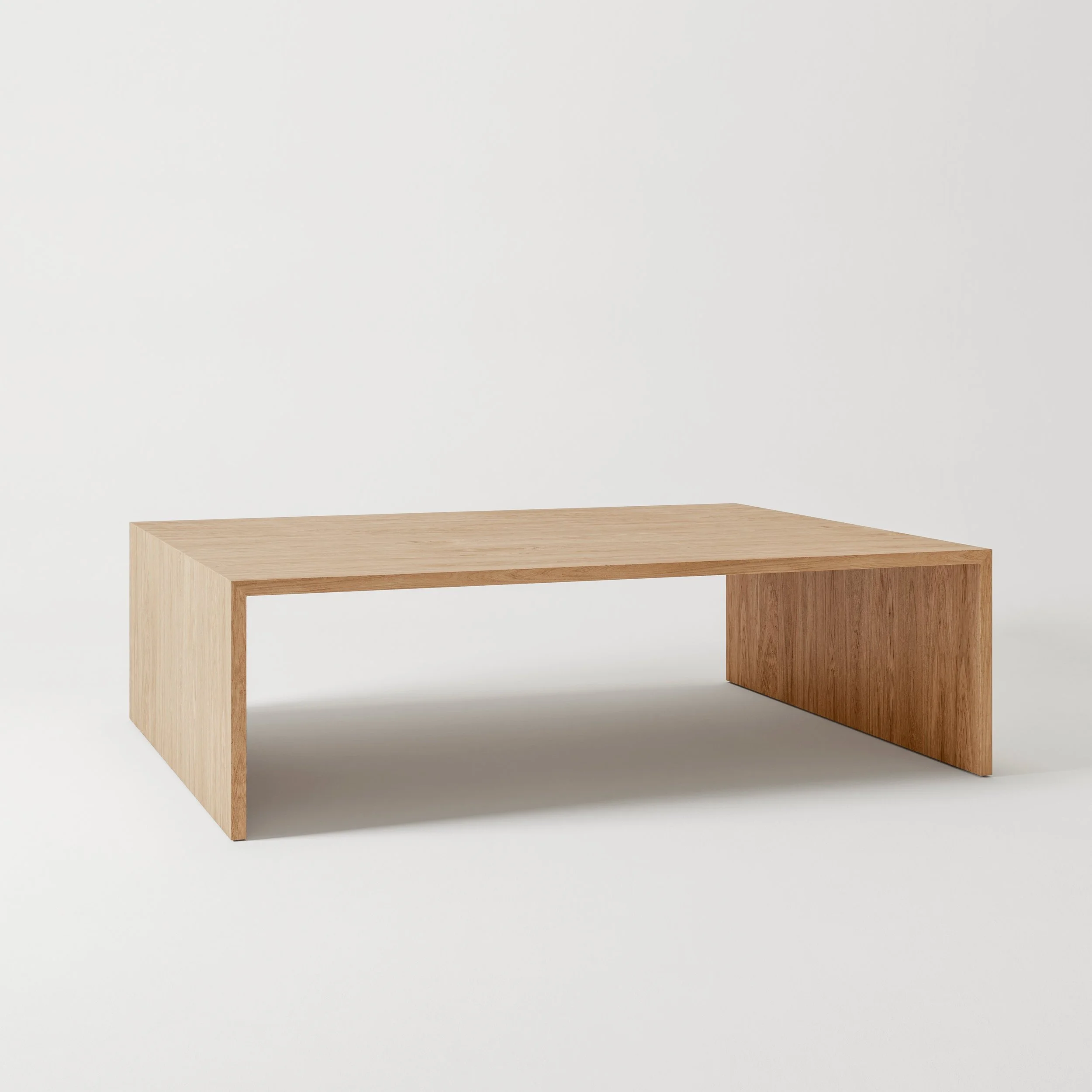 Solid wood coffee table. Simplistic waterfall style.
